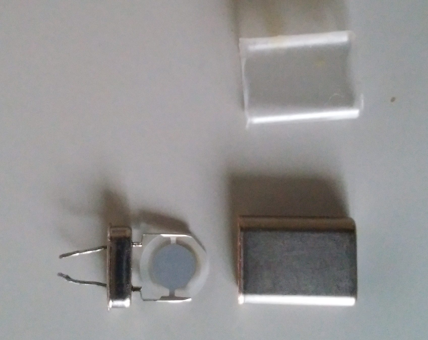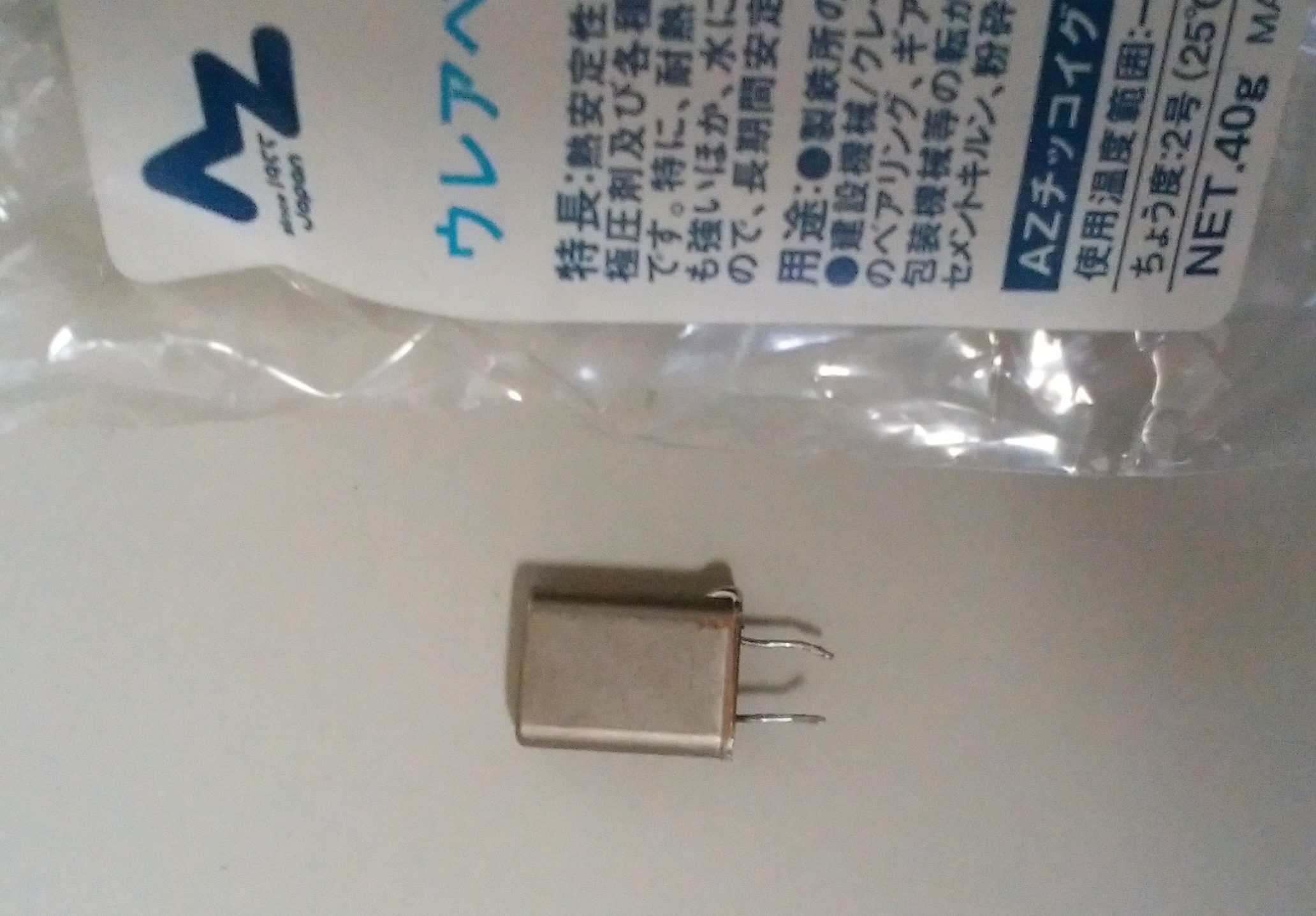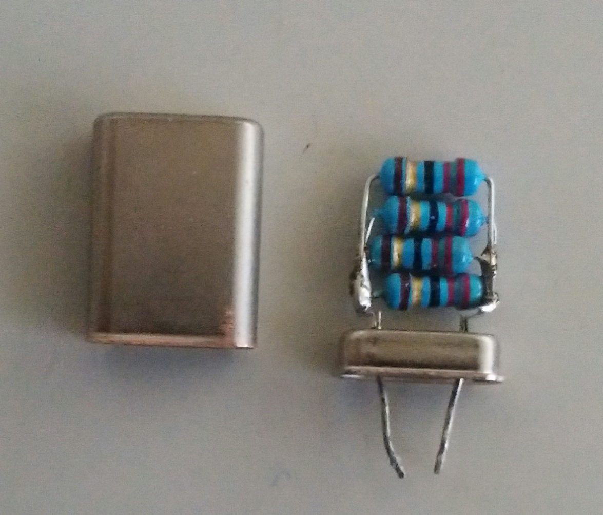 消費電力の大きい抵抗があれば、Heater代わりになるのですが、残念ながら手持ちに丁度良いものがありませんでしたので、不要となった水晶発振子を改造して小型のHeaterを作成しました。